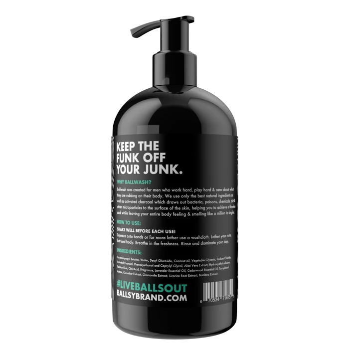BALLWASH FEATURES SEVERAL ESSENTIAL OILS AND PLANT EXTRACTS INCLUDING LAVENDER, CEDARWOOD, CUCUMBER, GREEN TEA AND BAMBOO LEAF THAT MOISTURIZE, CLEANSE AND LEAVE YOU SMELLING SIMPLY FANTASSTIC.