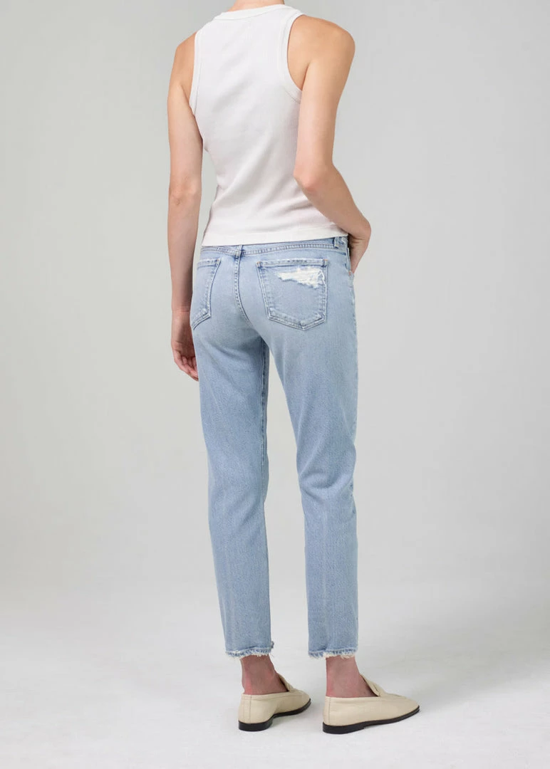Acquired from him, tailored to you. You’ll find yourself reaching for this signature boyfriend jean weekend after weekend. The slimmest of our relaxed fits, the Emerson features a low-rise and ankle-length inseam. Easily dressed up or down, these look great with a feminine heel or causal sneaker.