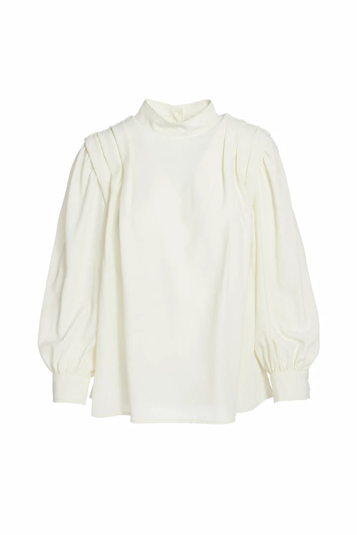 Wear her to work or out on the town. With a statement pleated shoulder detail, the Brett Blouse is classic and versatile!