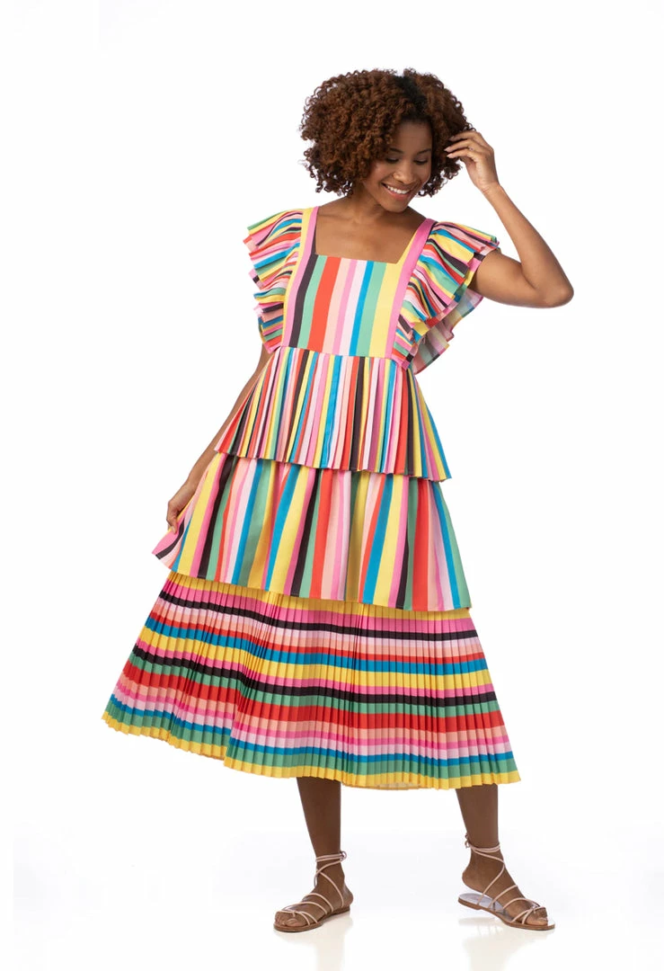 Go bold or go home. This fully-lined maxi dress is sure to turn heads! We especially love her tiered skirt and fun sleeves.