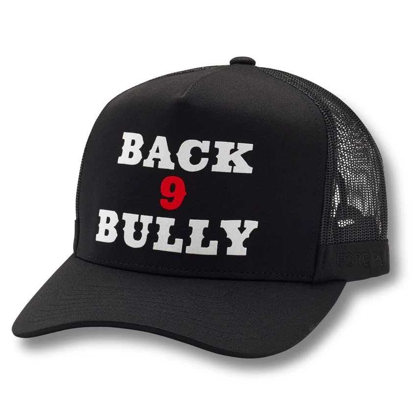 The Back 9 Bully is brand new this season from G/FORE. This lightweight trucker features a mesh backing, snapback design, and flocked lettering with a tonal top stitch.