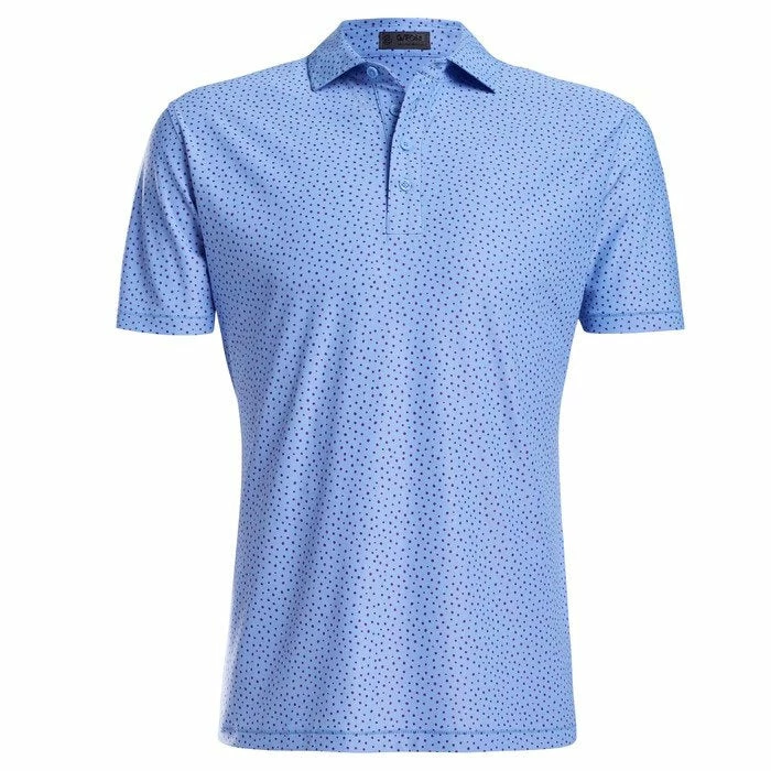 SIMPLE BUT NEVER BORING, THE DOTS POLO IS MADE WITH ULTRA LIGHTWEIGHT AND BREATHABLE TECH PIQUE AND FEATURES A CLASSIC POLKA DOT PRINT THROUGHOUT. PAIR IT WITH THE STRAIGHT LEG TROUSER FOR A SOPHISTICATED LOOK ON OR OFF THE COURSE.