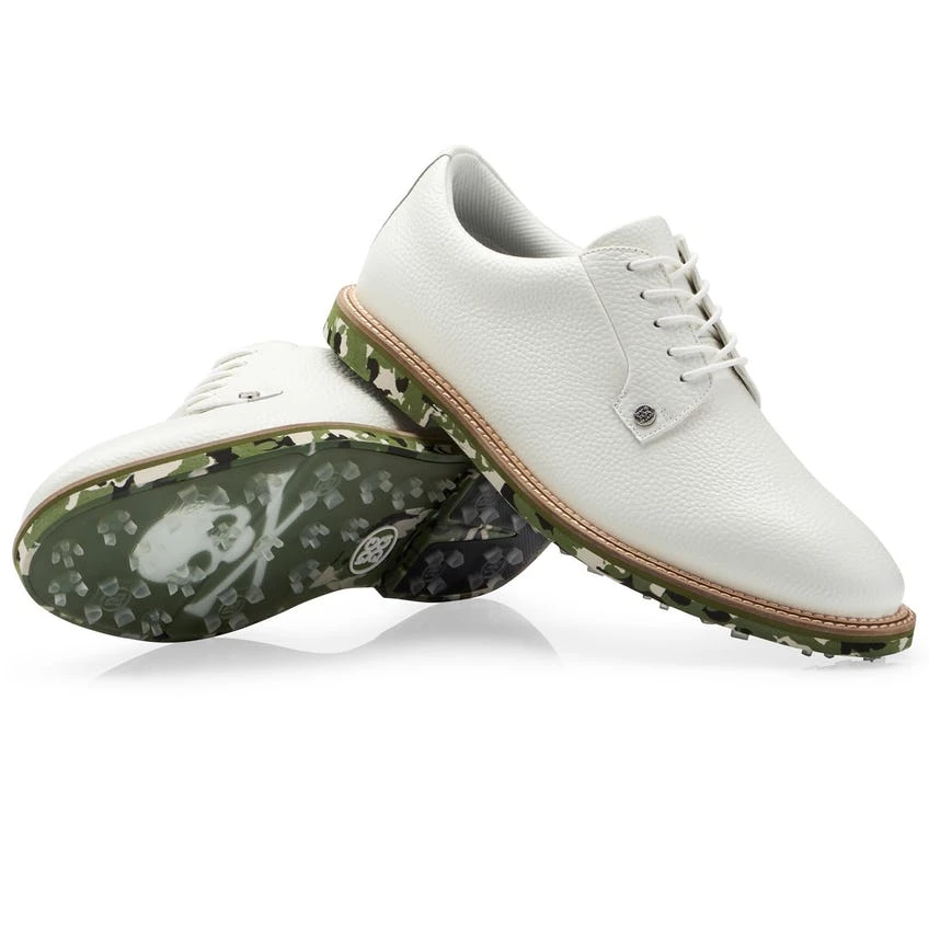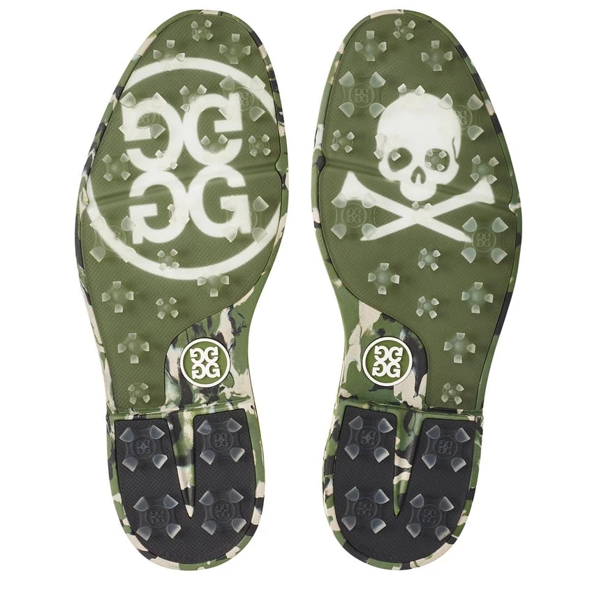 The Gallivanter returns this season from G/FORE but this time in limited edition colorways. As stylish as it is comfortable, the Gallivanter golf shoe combines an athletic fit with premium waterproof leather now with a camouflage outsole. Custom designed by G/Fore team of footwear experts, the Gallivanter boasts an ultra lightweight sole coupled with a bespoke cleat design for optimal on-course traction. This shoe sports a washable & anti-microbial, triple density foam cushion footbed for superior comfort along with comfort system technology which allows airflow to feet & provides the ultimate massage for your soles.