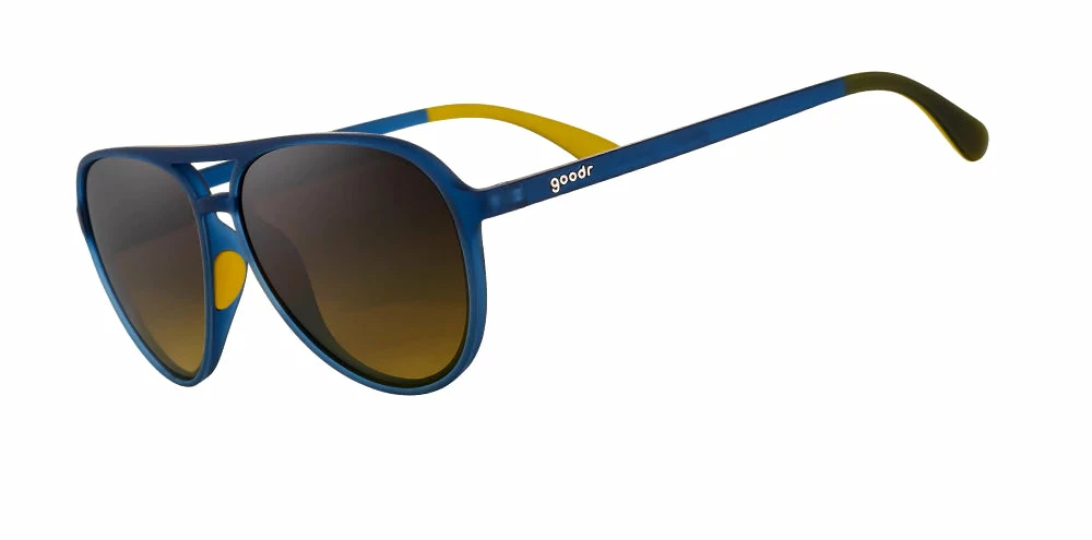 Our MACH Gs are a classic aviator style made to give you the speed if you feel the need. Plus, this smooth, sleek frame means no unsightly imprints on your nose from those weird nose pads on traditional metal aviator frames.