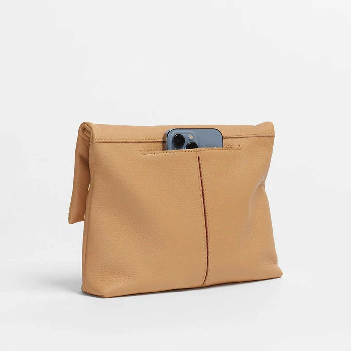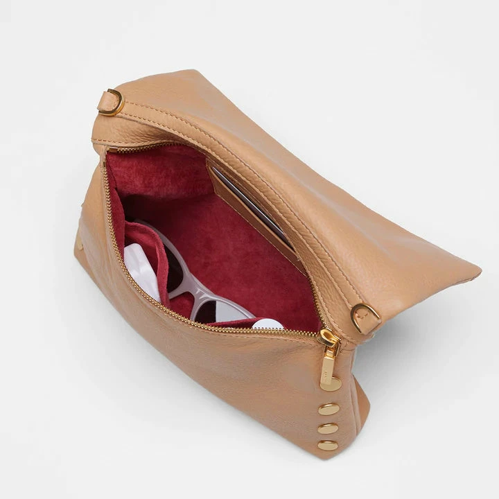 - Crafted with soft, pebbled tan leather