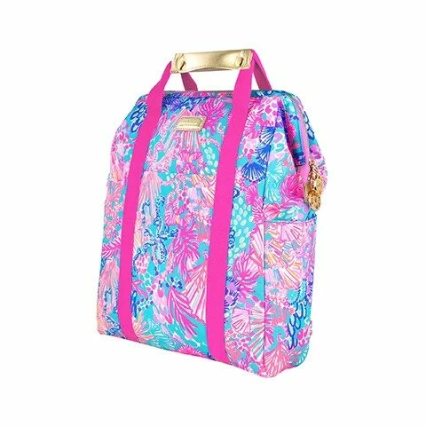 Skip the drive-thru and take your favorites to go the Lilly way with this portable backpack cooler. Your foods stay at the right temp inside the thermal insulated interior, and the adjustable straps convert from hand-held to over-the-shoulder to backpack style in a cinch. Complete with a wired opening that makes loading/unloading a breeze, and sewn-in elastic straps to secure wine bottles inside, this backpack cooler will be your new favorite summer-time companion!
