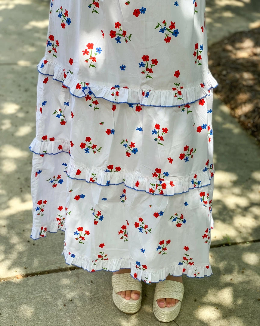 Our favorite maxi skirt is back for Summer. Featuring an elastic waist and ruffle trim, she skims the hips for a flattering fit.Â