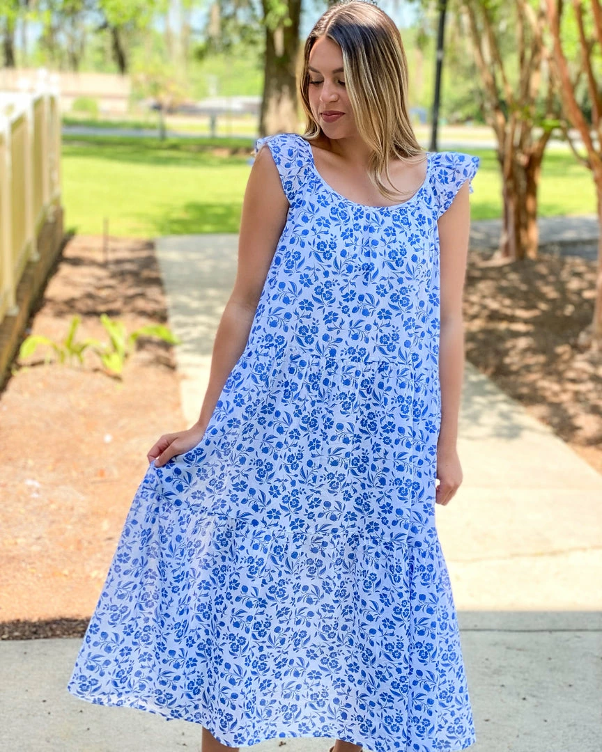 Our new Milly Dress will have you leaving the house in style. Her flutter sleeve and flowing tiered bodice create the perfect dress for a day around town. Pair her with your favorite sandals, or dress her up with a fun wedge.