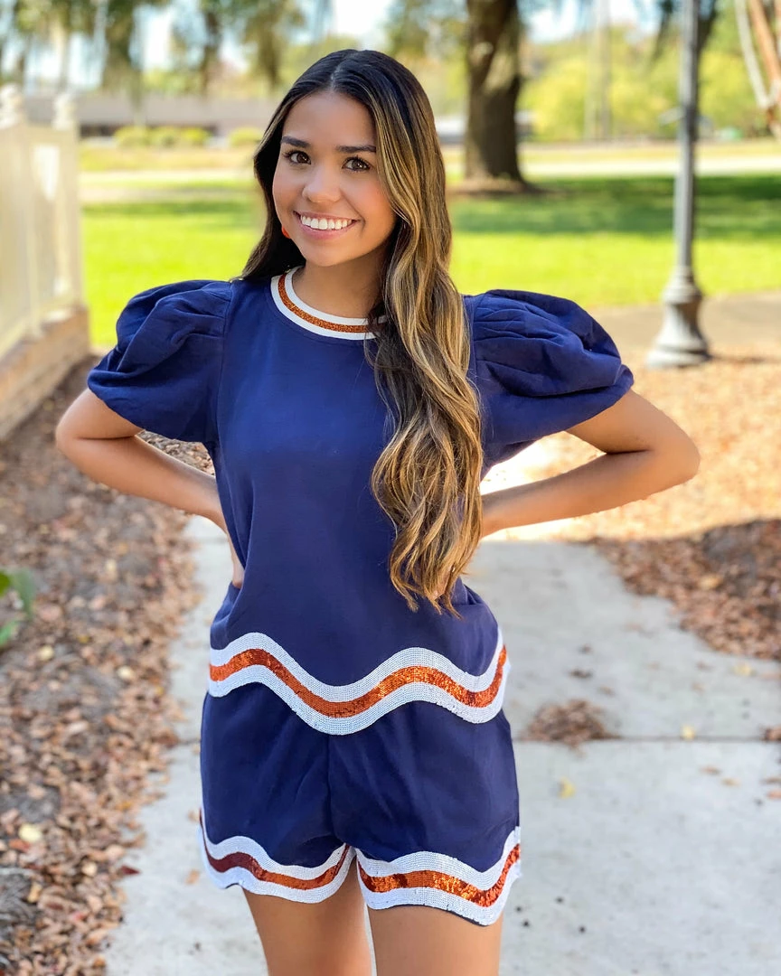 Sold as a matching top/ short set.