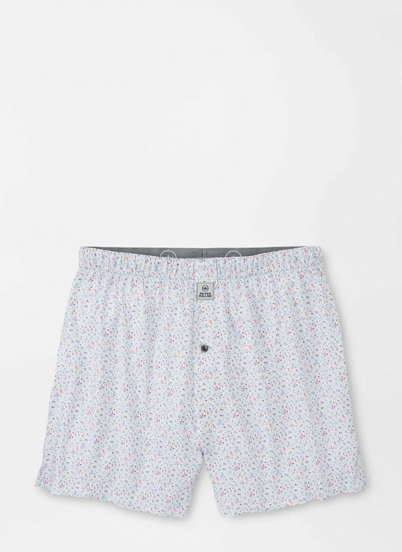 These novelty print boxers are designed with a supremely soft fabric that delivers enhanced performance and comfort. This style offers moisture-wicking, easy-care and antimicrobial properties, while a hint of spandex delivers four-way stretch. They are finished with a Peter Millar logo-lined waistband and a button fly.