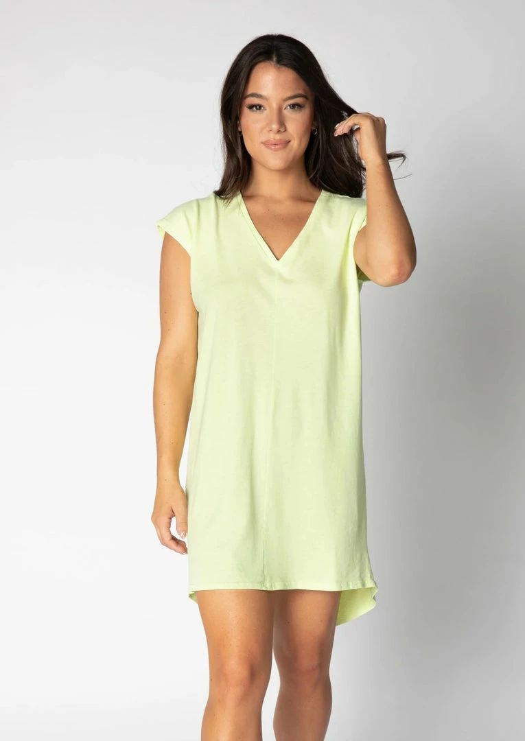 - V-neck cap sleeve dress in our cotton slub.