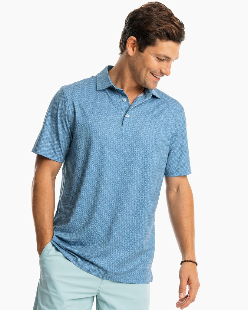 This printed men’s polo fits for the resort or country club. Four-way stretch and moisture-wicking technology keep you dry and comfortable all day long.