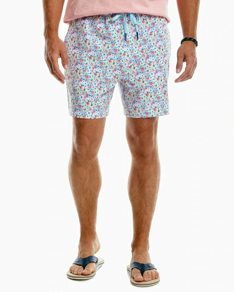 Unwind on island time in consciously-crafted swim trunks featuring a vibrant, lei-inspired print. Made with recycled materials, you can do your part just by putting on these swim trunks.
